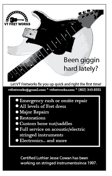 Jesse Cowan is a certified luthier who has been working on instruments since 1997. He currently works and plays bass in the greater Burlington, VT area.